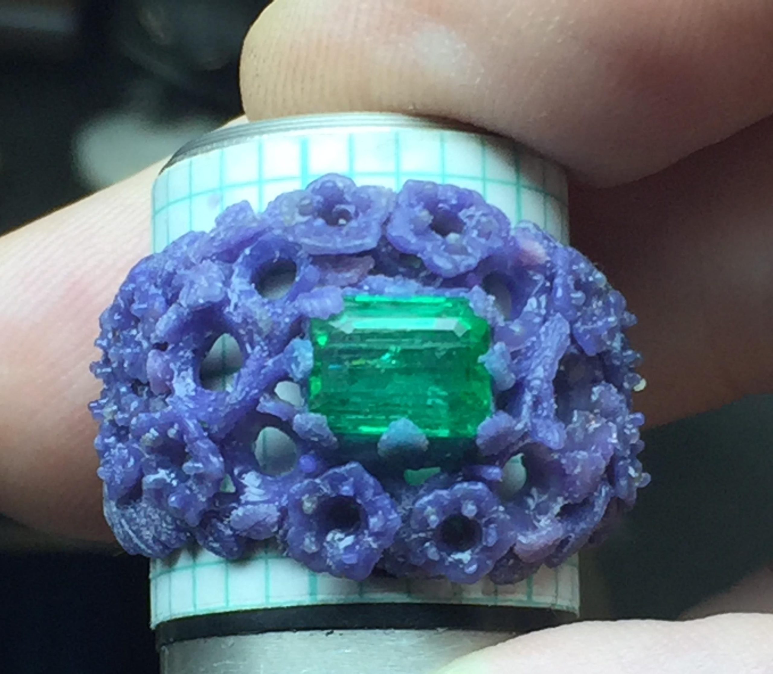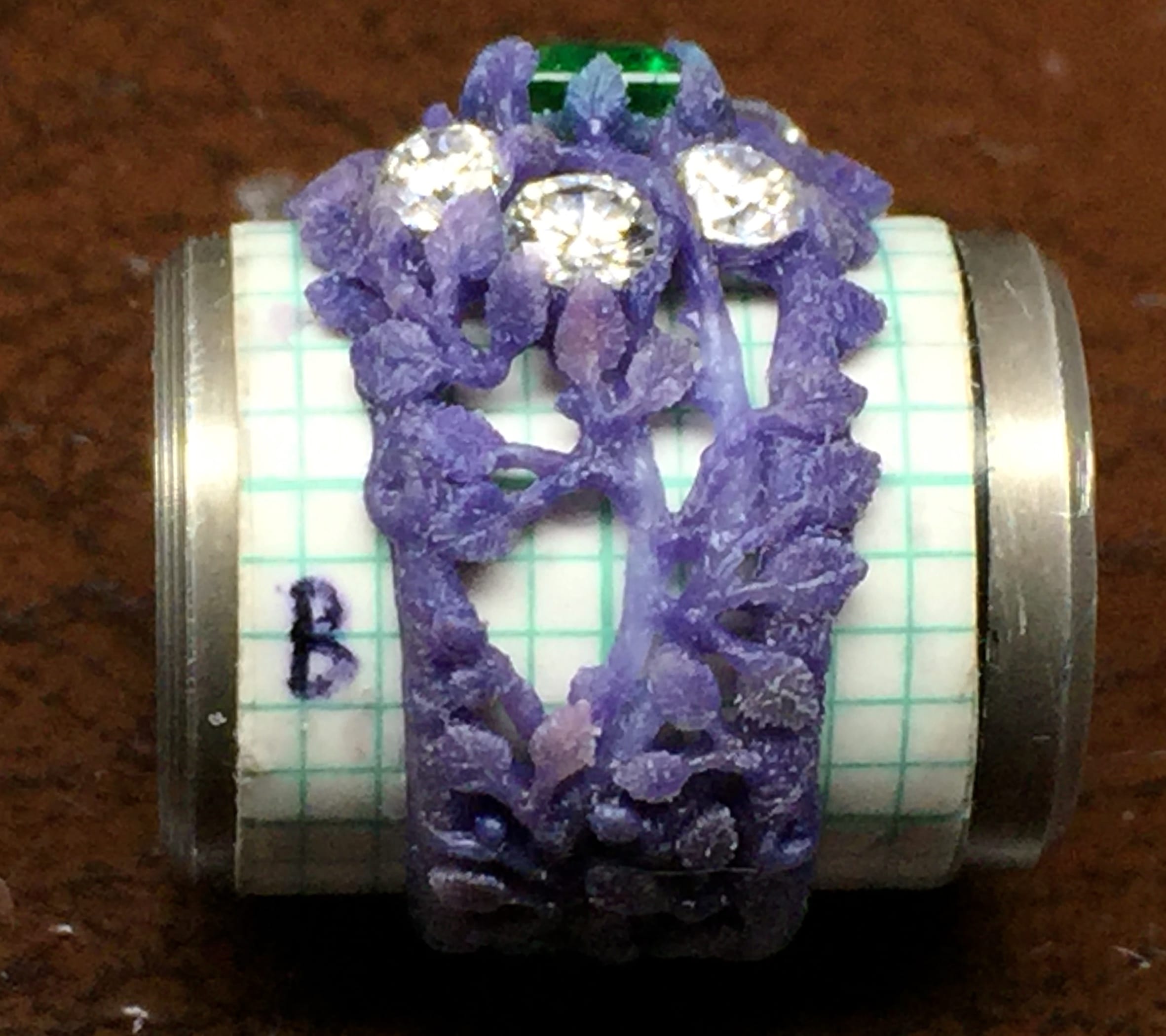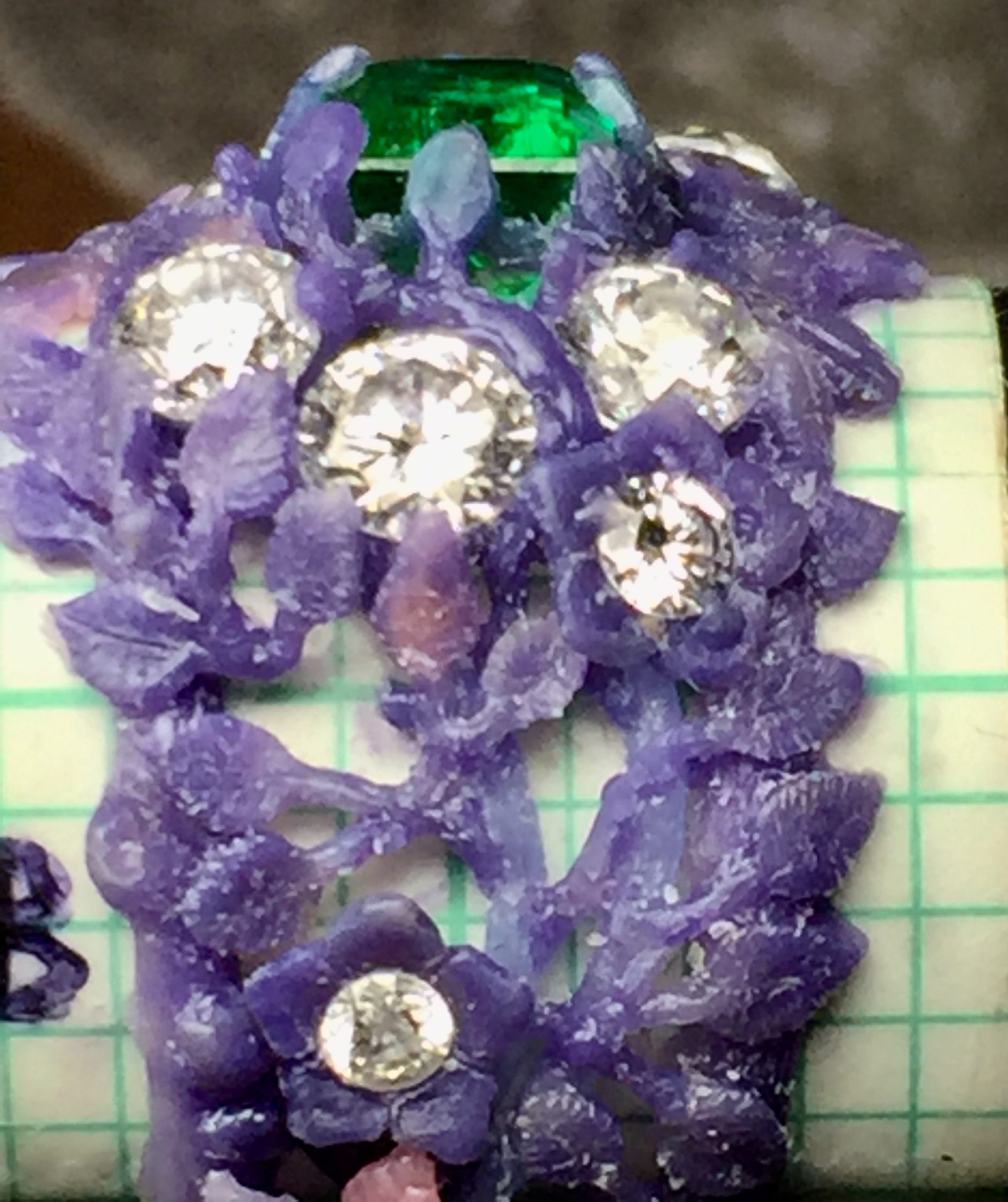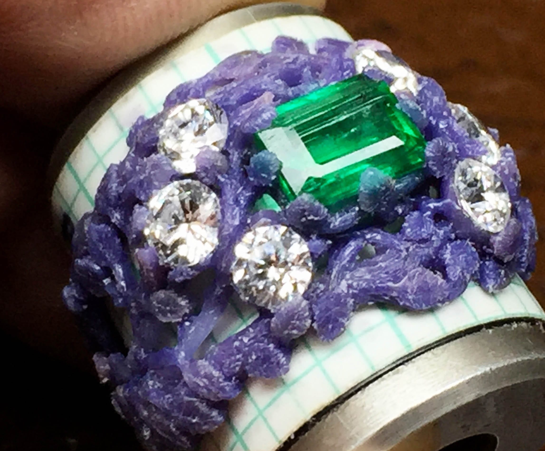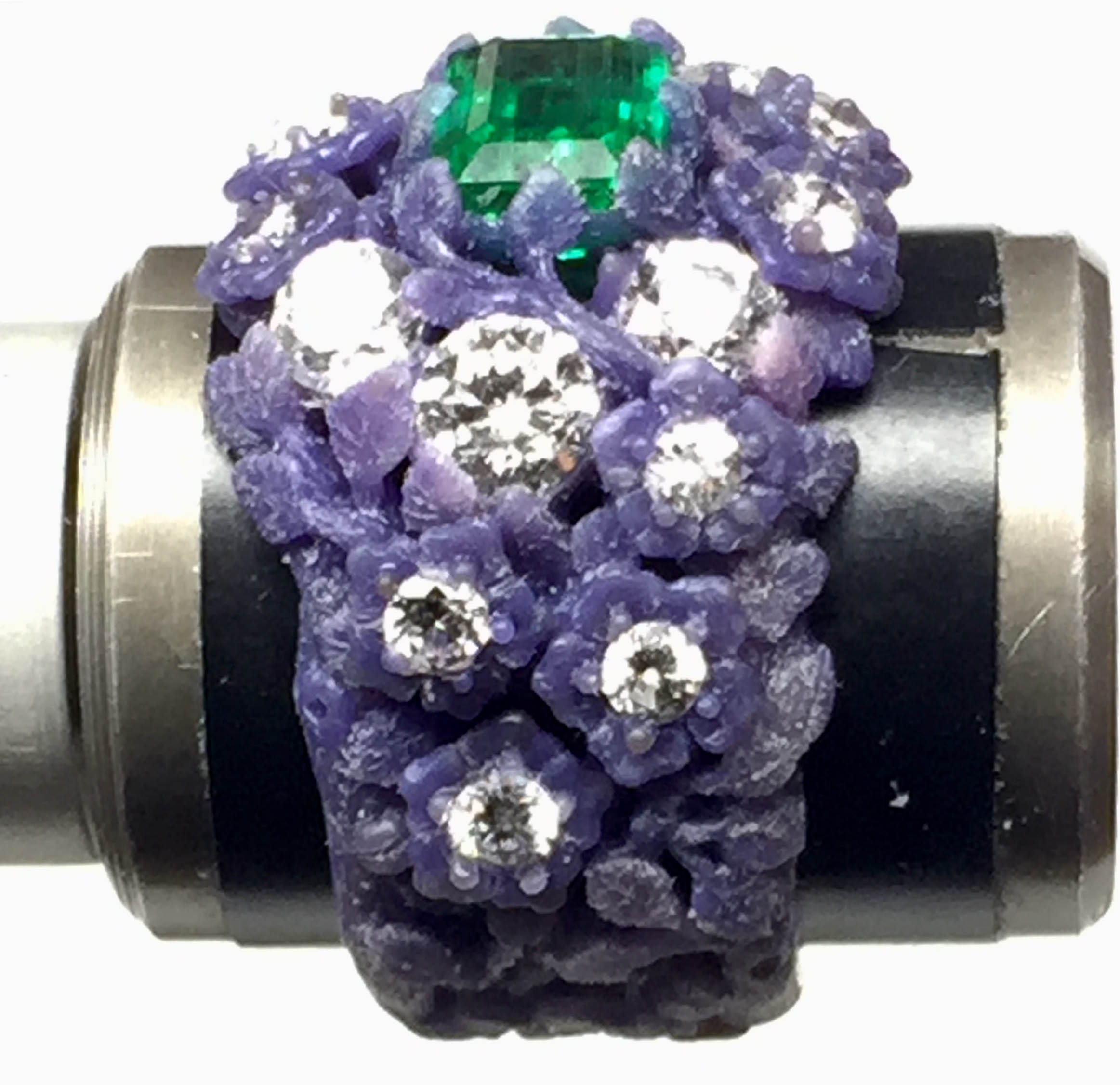 Emerald diamonds flower ring making the wax model: