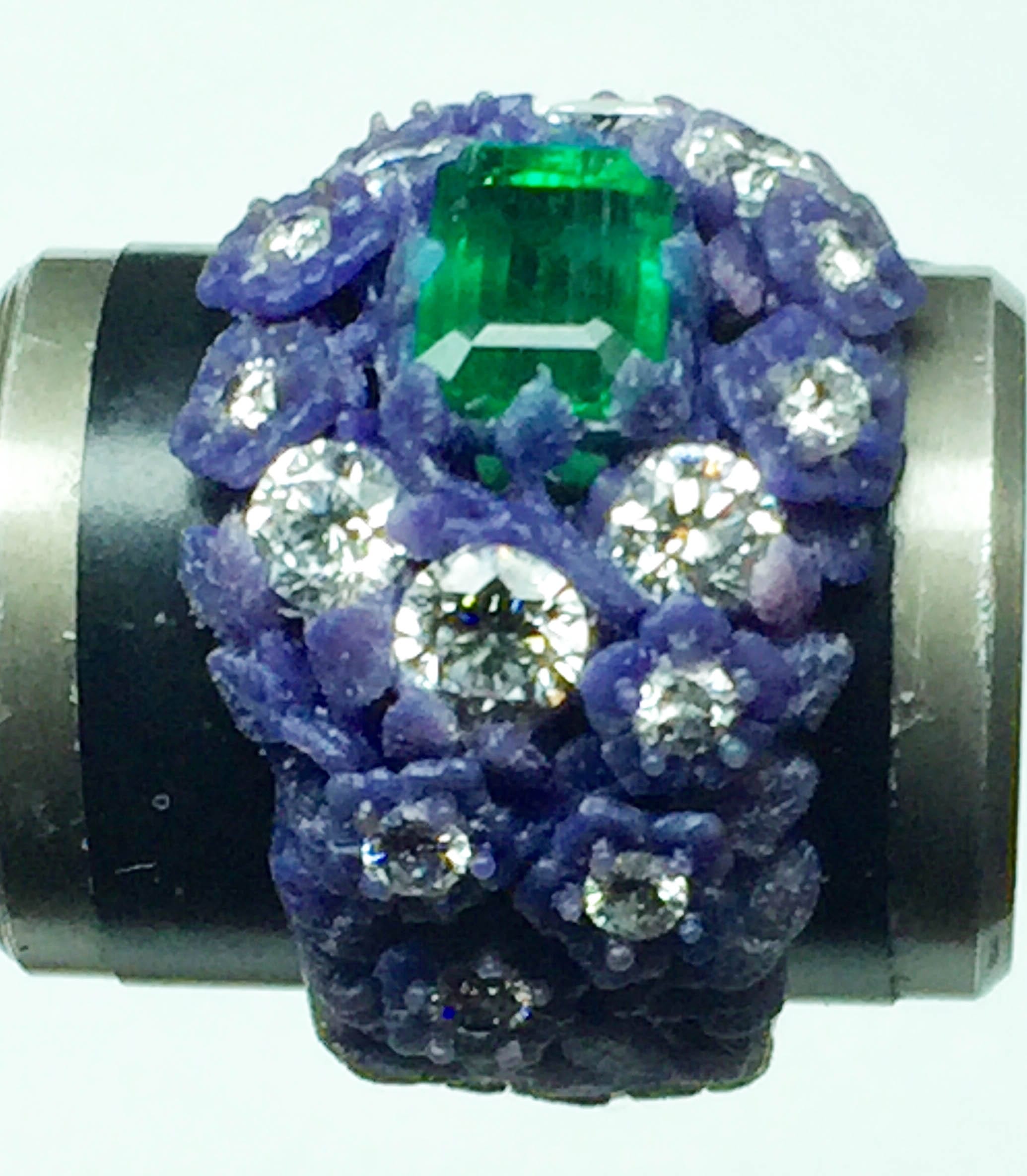 Emerald diamonds flower ring in 18K, designed and made by George Postgate https://postgatejewelers.com