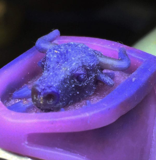 The Man's bull ring is shown in wax as well as partly finished in white and yellow gold.