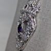 Her Scottish thistle luckenbooth pendant is set with an amethyst, and a ruby. It is approximately 2 inches tall. The pendant is shown in a bright finish that will oxidize slowly. Check out our other Scottish pieces here:Â https://postgatejewelers.com/product-category/scottish-jewelry-irish/