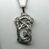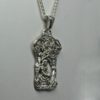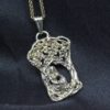 The apple Maiden pendant is hand sculpted in sterling silver so it will darken over time. If you wipe it once in a while with a clean soft cloth the pendant will begin to show more contrast and depth. It will look even better after some time. The pendant has a pleasing weight, it measures 1 3/4″ X 1″ The chain is 20″ long in a fairly heavy wheat link style. To see more pieces like this as well as ones with floral and animal scenes click here: Â https://postgatejewelers.com/product-category/flowers-vines-and-animal-jewelry/