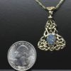 The pendant is set with a natural Australian solid black opal from Lightning Ridge that weighs approximately 1.07 cts and is 0.9 mm X 7.2 mm in size. The pendant measures 1.5 X 1” and is finished so that all of its surfaces are smooth and pleasing to the eye and touch. A chain is not included in this listing. We carry very fine Italian chains and can sell you one with your pendant. Just tell us what you would like or ask for suggestions. Our prices are very fair. Please note that these are 06/07/2020 prices. Gold prices can fluctuate so custom orders and chain prices can vary. We will give you the correct price when you order or inquire. You may order a custom version of this pendant in your choice of gold and most stones. We work in 14 D white, yellow and rose gold. 18 K is available in yellow and white. 22K is also available. Here is an example of the black opal Celtic pendant an other stone. I can make the pendant work with stones that are slightly different in shape. This includes faceted or cabochon cut stones. https://postgatejewelers.com/product/celtic-australian-black-opal-pendant-14k-gold/Opal and measurements