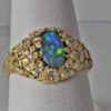Black Opal Flower Ring size 6 in 18K gold and diamonds. an original design by George Postgate