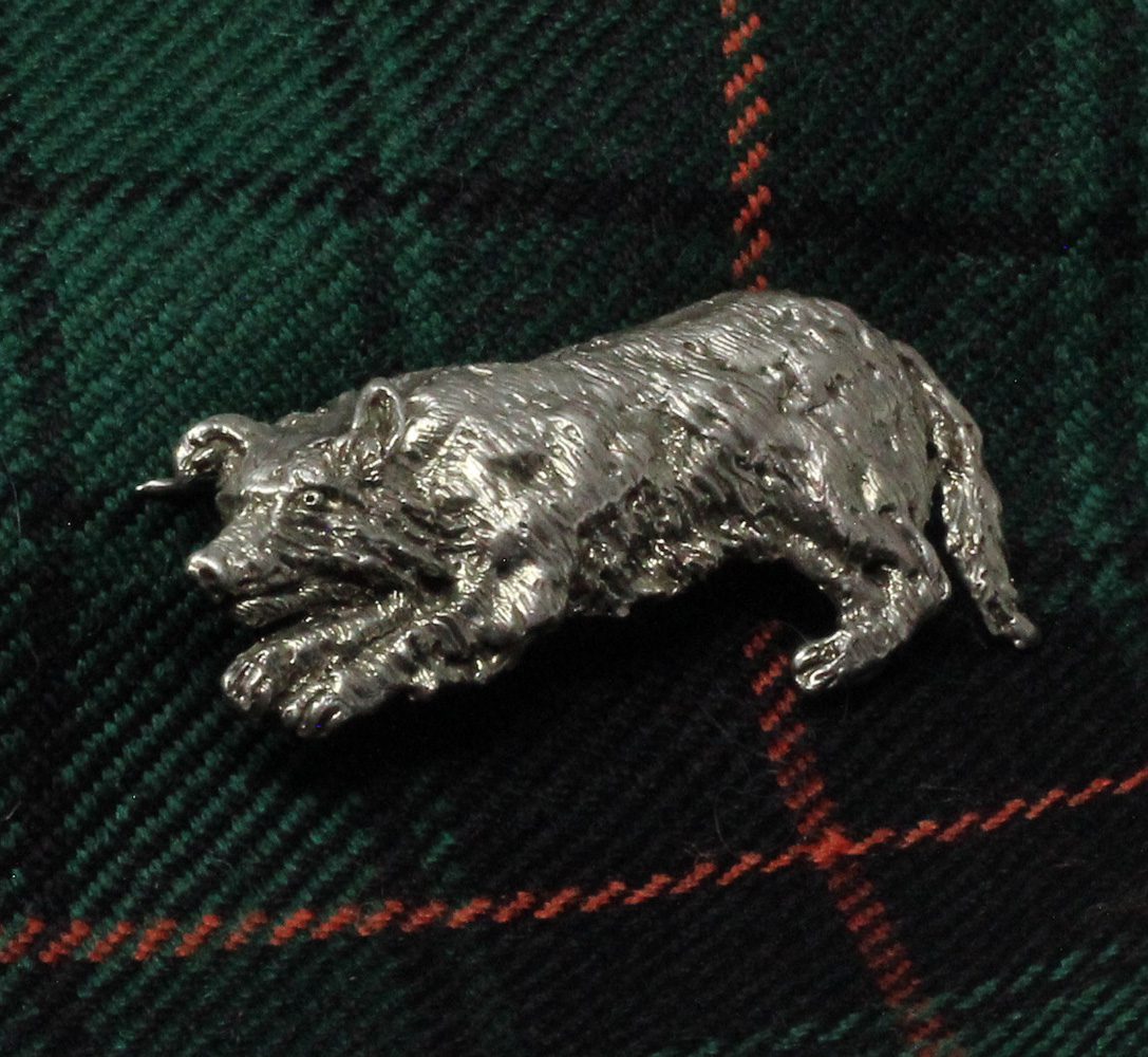 Border collie brooch by Suzan Postgate in sterling silver