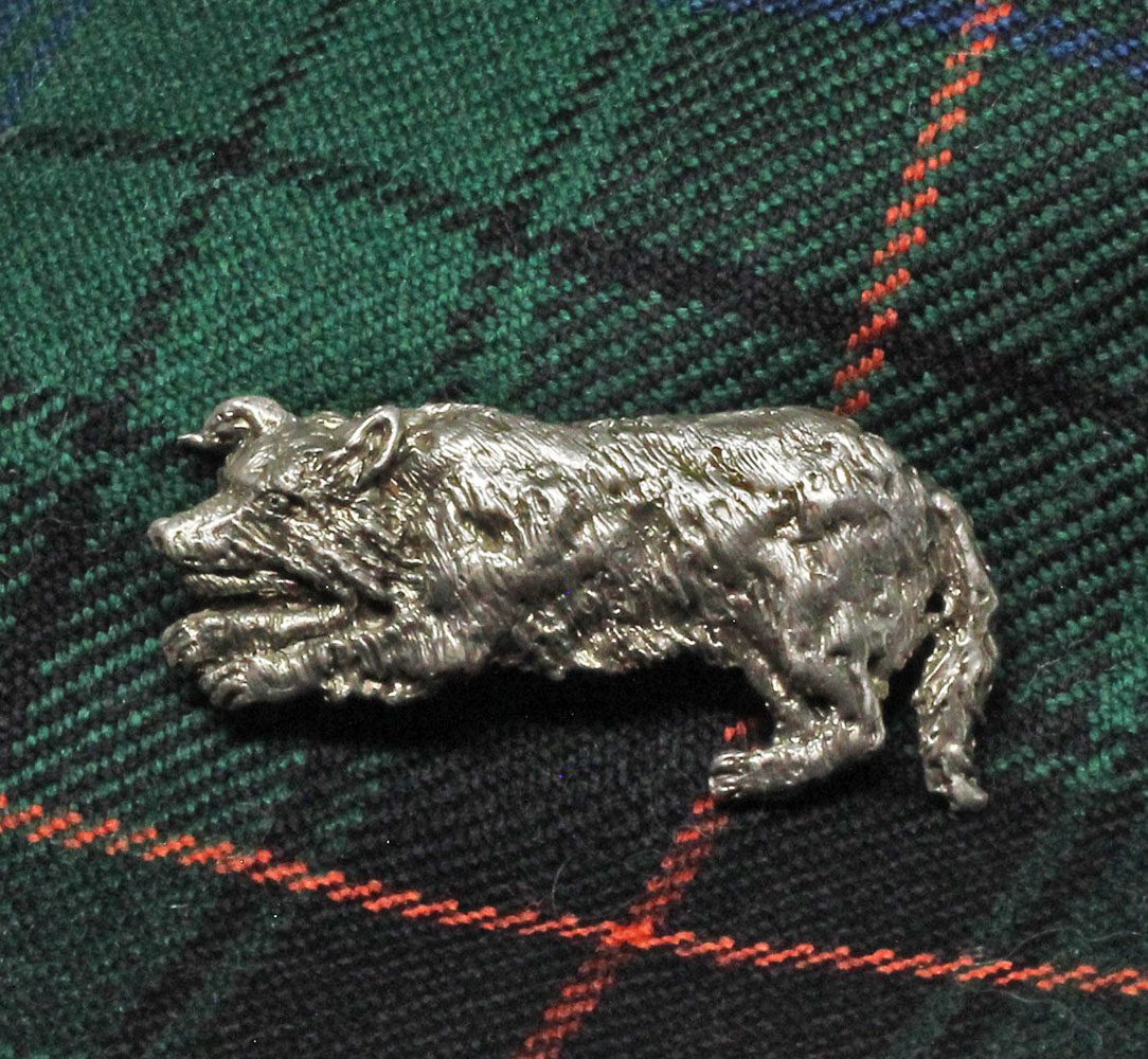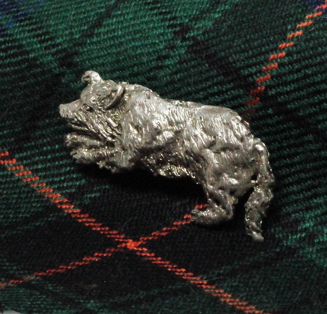 Border collie brooch, designed and made by Suzan with more than a bit of help from our daughter’s border collie, Chewy. Border collies are among the most loved dogs and they are also among the most busy. They are the main breed that has helped sheep farmers make a living for hundreds of years. Border collies are still telling sheep where to go from Scotland to New Zealand today.