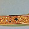 Most of the bracelet’s design is a flowing arrangement of vines and flowers with diamonds. Several bunnies are sampling the flowers and doing other bunny things. The bracelet is about 1 1/4″ X 7″ wide. I will make it in any wrist size. The bracelet’s detail is very dimensional making it seem that the bunnies are moving about within it. I can also make it in the shape of your wrist. Some people have rather flat wrists and others have very round wrists. I will shape it to fit either. We will also set it with the stones of your choice. The setting is safe enough for even delicate stones like opals or pearls. About $7,500 in the cuff style as shown to about $9,000 as shown in the clasp version, 01/2020 prices. The price will change depending on the stones chosen and the price of gold. It’s hard to estimate the price with gold and stone prices constantly changing, so it may cost less. I will work out a fixed price when you order. I’ve priced the bracelet a bit high so as not to shock anyone. Please inquire for prices, a sterling silver will cost about $600.00. ( 01/2020 ) Delivery: Two to Six months depending on our schedule. Our special orders page will explain most of what you need to know to order. It also gives us a chance to show you more of our designs. Prices will be determined upon your choices: https://postgatejewelers.com/special-order-jewelry/  We have many images of our designs here. Just make sure that you have enough provisions for the journey:https://www.facebook.com/Postgate-Fine-Jewelers-111540785537658/photos/?view_public_for=111540785537658&ref=page_internalBunny bracelet in 18K, Details: