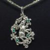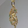 The pendant is 1 1/4th inches tall by 5/8ths inches in width it is made in 14K yellow gold. The four small natural emeralds are fine in color and are Colombian stones. The chain is not included but we can send a beautiful, very high quality chain with the pendant if you need one, and just add it to the price of the pendant. The chain shown is a Figaro link. This is a strong link that doesn’t tangle easily. In larger sizes this style chain can also be adjusted in length by clasping one of the larger links. This one is a bit too small for that, but it is beautiful and one of my favorites. A 14K Wheat link 18″ chain 1.3mm thick will cost about $380 and is also a favorite for this piece. We can supply just about any link style although our supplier may be closed at some times during this season. Please note that these are 06/07/2020 prices. Gold prices can fluctuate so custom orders and chain prices can vary. We will give you the correct price when you order or inquire.