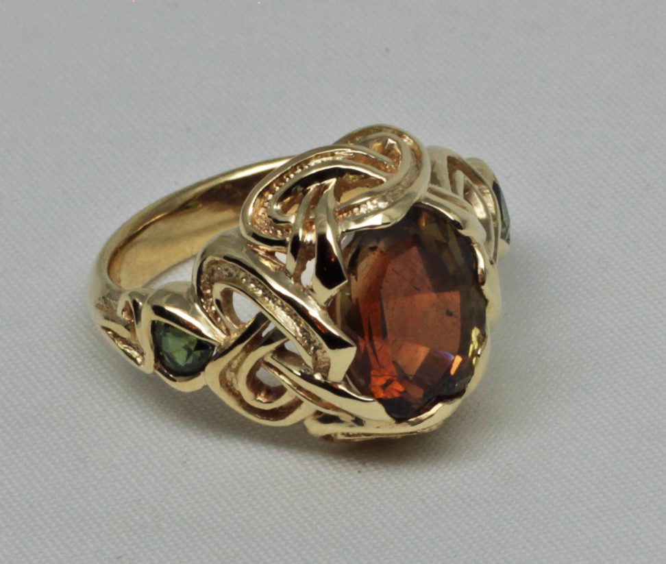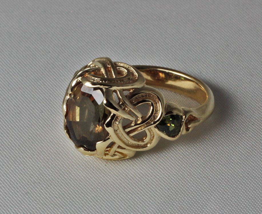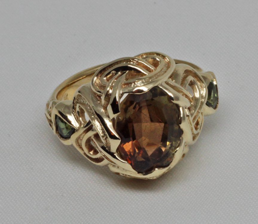 Celtic andalusite knot ring in 14K designed and made by George Postgate size 6 1/2