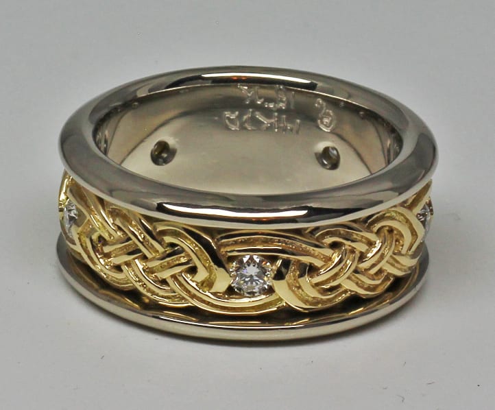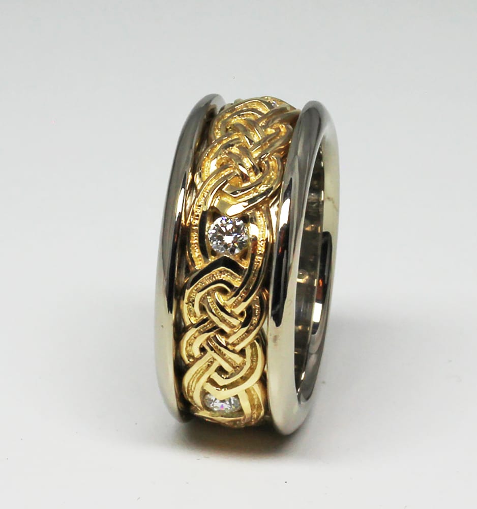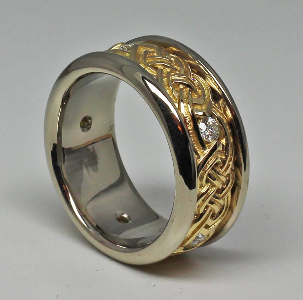 Celtic Diamond Knot Band in White and Yellow Gold size 12 1/2 by George Postgate, https://postgatejewelers.com
