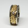 Celtic Diamond Knot Band, This band was hand carved in wax and hand finished in 18K yellow gold by George. He has taken one of the most loved Celtic designs and turned it into a masterpiece. It is more unique, dimensional, and vital, than those produced by other means. The band is powerful, beautiful, and Heavy enough to last for generations. I prefer as wide a band as is comfortable to wear. A larger band allows one to better see its details and the reflections of light and colors, dancing upon its polished surfaces. If you love Celtic jewelry please check out ours: https://postgatejewelers.com/product-category/celtic-jewelry/ Here is a version the band with no stones: https://www.postgatejewelers.com/product/celtic-two-tone-knot-band/