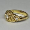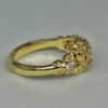 Celtic Diamond Knot Ring, This ring is an original design by George who also made it. The ring was carved by hand in wax and then re- carved in gold. Customers love this ring, it protects the stones and displays them beautifully, they look like they are floating within their settings. Its shape makes it a pleasure to wear, the ring is shaped so that it doesn’t get caught on clothing, and its rounded shank and edges make it very comfortable. This design will take center stones of up to 1ct or more, I just design a larger version that looks right with the stones.