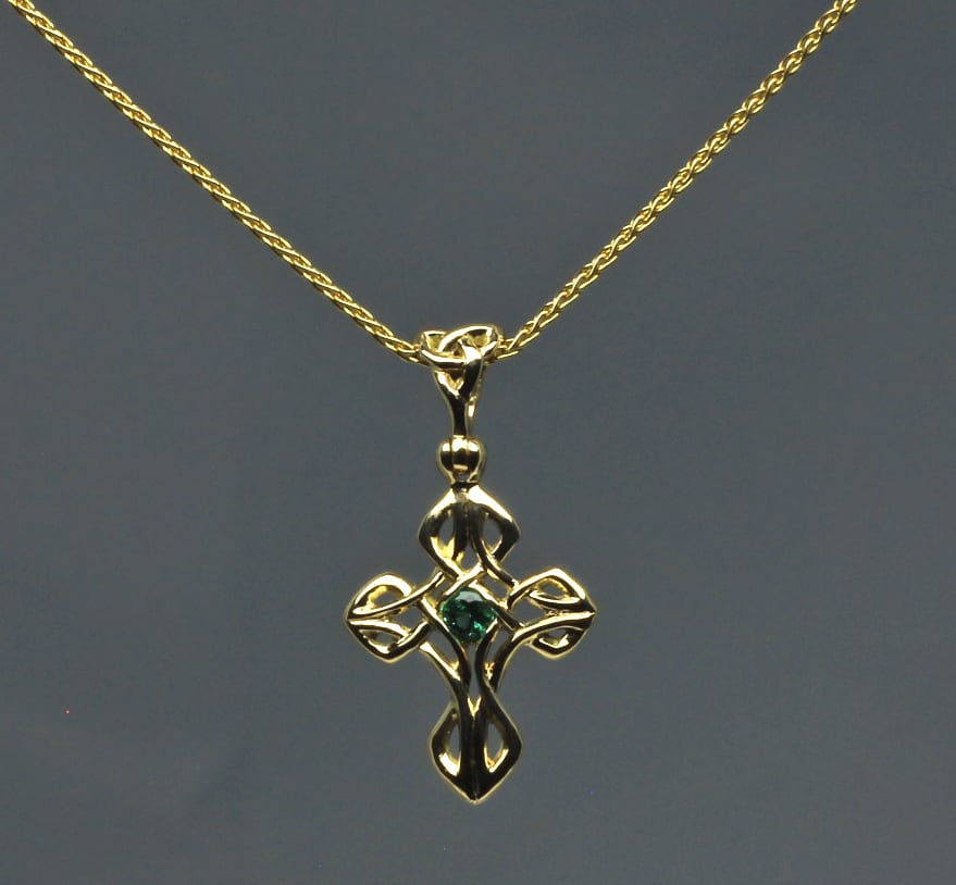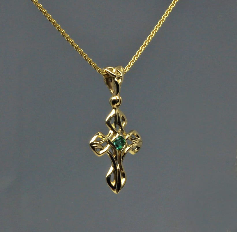 Celtic emerald cross with 3mm emerald in 14K an original design by George