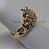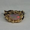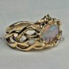 The Celtic Fire Black opal ring is an original design by George who also made it. This dramatic design transitions from a knot-work band into a pattern of golden flairs that frame the beautiful Australian black opal. The setting gives the opal good protection from ordinary bumps and knocks, making the ring one that can be worn every day.