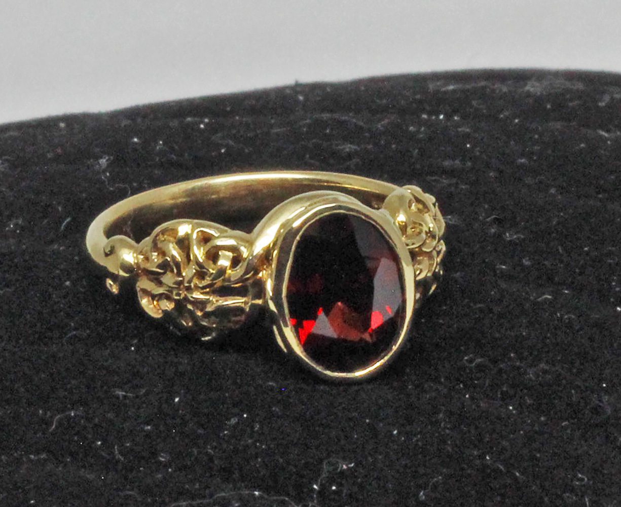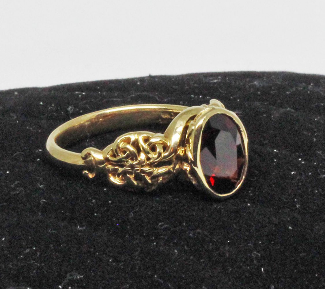 Celtic garnet knot ring details: