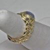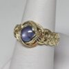 Celtic Star Sapphire Ring in 14K designed and created by George Postgate This ring is designed to show off its beautiful star sapphire, holding it securely in a traditional Celtic knot work setting. The openings in the knot-work become windows showing its sides as well as top. The setting is exceptionally smooth and comfortable, it will easily slide in and out of gloves and pockets without a snag. There are no prongs to catch or loosen. If you love Celtic jewelry and design, please follow this link to see more of our Celtic jewelry: https://postgatejewelers.com/product-category/celtic-jewelry/