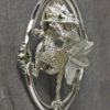 This is a very detailed pendant. It is also very dimensional, the frame of the pendant is about 3 1/4″ tall by 3″ wide by 1″ deep. An 18″ 4mm Byzantine link Sterling silver chain comes with the pendant. A dragon occupies the center of the frame, it is in the style of classic European dragons as well as the Welsh dragon. The pendant’s frame is set with four natural faceted peridots. They range in size from approximately 7.2 mm X 5 mm, to 5.5 mm X 4 mm in size, and are a fine medium peridot green color. Small, approximately 2mm natural faceted Columbian emeralds are the dragon’s eyes. The small emeralds are an intense, bright, green. This pendant was sculpted in wax and then cast in silver. To learn more about the process click here: https://postgatejewelers.com/waxes/