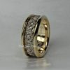 Eternity Knot Band in two colors of 14K is our version of one of the most loved traditional Celtic knot designs. This knot can be found in modern and ancient Celtic and Viking art. It is beautifully carved in a very pleasing, Celtic knot-work pattern. I’ve done my best to insure that this one will be the nicest example that you will ever see. The white gold center was carved by hand. The white gold knots in the ring’s center are protected by raised yellow 14K borders. This ring’s details will last for a long time. It is much more dimensional than rings produced by most other means. The rounded knots and their slight differences create a flow and rhythm in the design that plays like music. Reflections of light and colors, dance upon the surfaces of the knots beautifully.