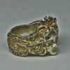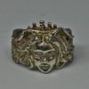 Fairy queen ring ,An original design by Suzan. The ring features the face of the beautiful fairy queen in its center. She is softly smiling and wearing a crown. Her hair flows toward the sides of her face transforming into gossamer wings that are connected to each other by a solid band.