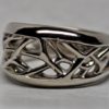 Frost crystal gold band has a very dynamic design. I admire similar designs in nature, especially in things like white crystals of frost on a window pane or on the surface of a frozen puddle. Nature is always a source of great designs. The band is a smooth sculptural ring that is beautiful, durable, and comfortable to wear. The interlacing frost needles are protected by a heavy outer band to assure a long life.