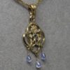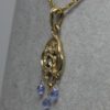Mackintosh sapphire and topaz in 14K, designed and made in the style of Rennie Mackintosh by Suzan. The pendant is a good example of Mackintosh design. Suzan has added her special artistic touch to make this beautiful lavaliere pendant. The pendant has three blue topaz faceted briolettes hanging from it's bottom, two beautiful amethyst cab set in its middle. Two ruby brilliants are set vertically in between the amethysts. Suzan and I have been influenced by several significant artists. Rennie Mackintosh and his wife Margaret are two such artists. Their designs included architecture, furniture stained glass and many other media. They are two of Scotland's most influential and loved artists. Here are a few other pieces that are Art Nouveau or Arts and Crafts in style: https://postgatejewelers.com/product-category/art-nouveau-pendant-ring/