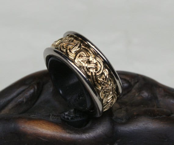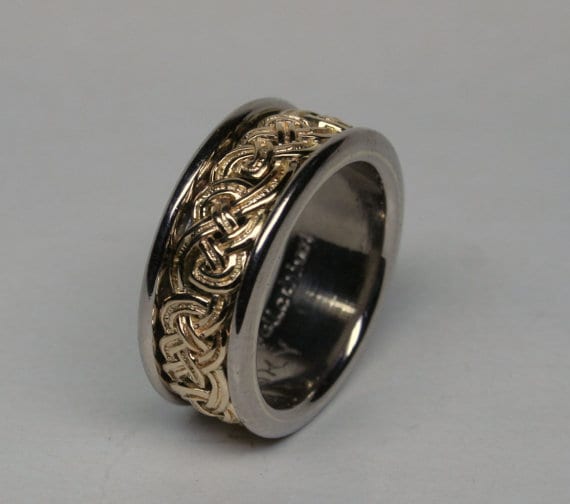 Man’s Celtic Knot Ring in Two Colors 18k Yellow, and 14K white Palladium Gold, Size 11 1/2