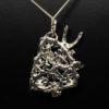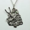 The pendant was hand made by Suzan, it is approximately 1 ½” tall X 1” wide. It comes complete with a n 18” sterling silver chain. This pendant is in a bright finish that will slowly oxidize in time to reveal more of its fine details. It is very dimensional. Suzan makes the nesting swallow pendant in gold also which may be ordered as a custom piece with your choice of stones. It can also be ordered with an oxidized finish. If you would like to order the gold version just get in touch and she will give you a price. A custom order will take about three to six weeks. We have a wide selection of our work on FaceBook. Some pieces are shown in various stages of completion. When we do a special piece for a customer we often send them image of waxes. This makes it easier for them to understand what we are doing. It also allows us to work together and insure the creation of something special: https://www.facebook.com/Postgate-Fine-Jewelers-111540785537658/photos/?view_public_for=111540785537658&ref=page_internalNesting swallow pendant, Details: