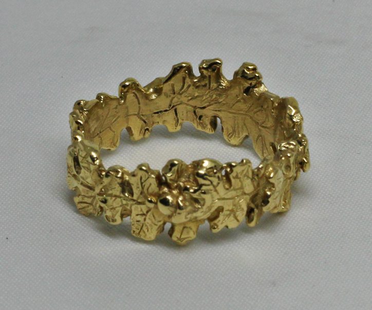 Oakleaf and acorn band by Suzan size 6 in 14K gold