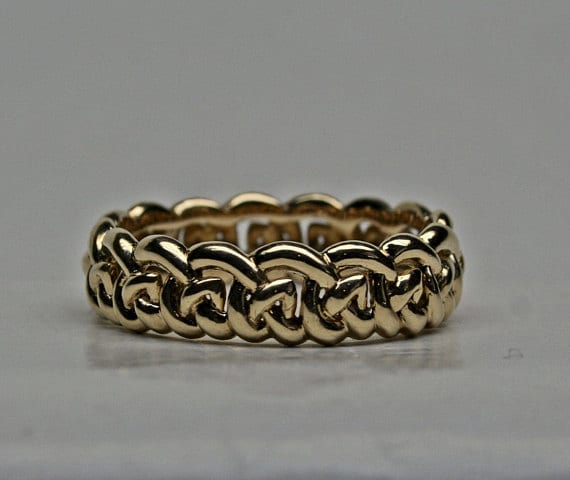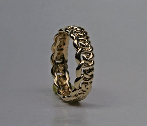 We can make you a sculptural open Celtic knot band as a custom order. You can specify its size and the quality and color of gold that you want us to make it in. The price will vary according to your choice. If you would like to know more about ordering, and also see some of the pieces that we have made for our customers over the years, click here: https://postgatejewelers.com/special-order-jewelry/