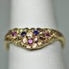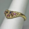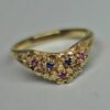 Petite sapphire flower band . A little band of blue and pink sapphire flowers, in 14K by George size 6