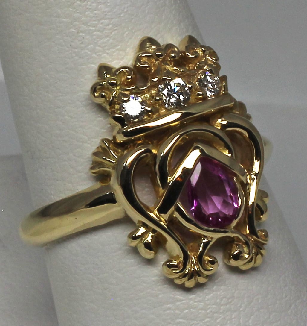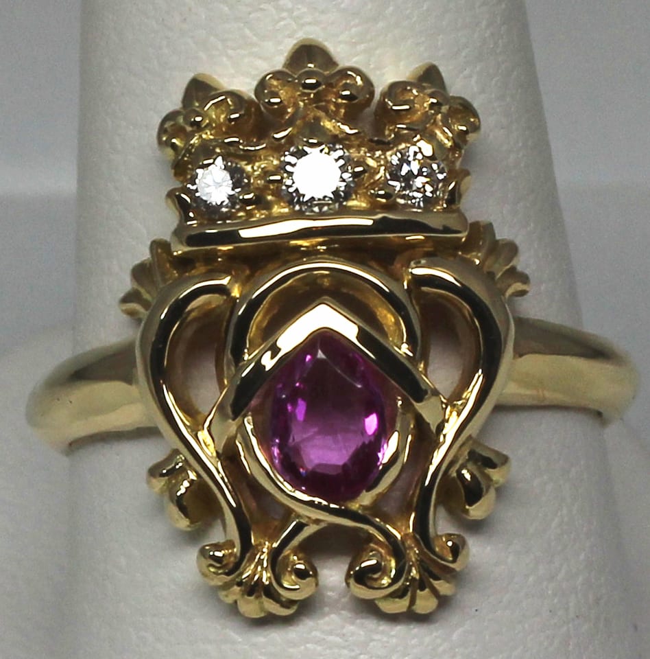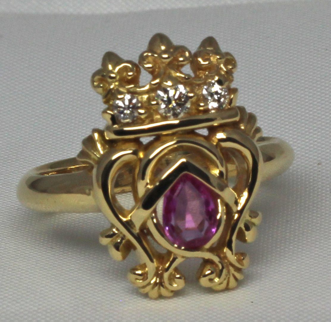 Pink Sapphire Luckenbooth Ring In 18 K size 6 3/4