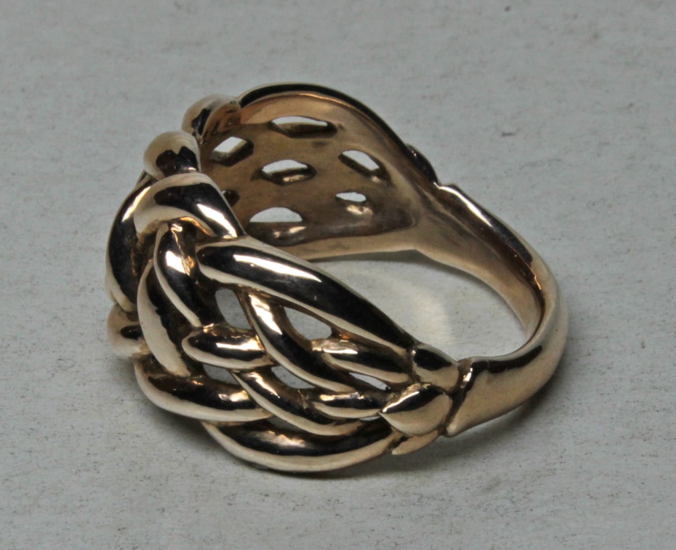 Celtic Knot Ring Rose Gold with Ring Shank in 14K , This is an open knot-work band in a Celtic inspired design. The band is wide on top and tapers down to a smooth, comfortable, rounded plain band. This is my answer to those who would like a wide band but have fingers that are too short for a normal band this width. The design looks like a wide band and yet, it is also flattering to the hand. The top of the band goes back farther on the hand than a plain band would. This makes the finger look longer with the ring on, than it does with the ring off.