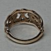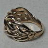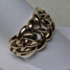 This band is made in 14K rose gold. Our refiner calls this alloy red gold because it has the strongest red color of their rose gold alloys. The band is 1/2″ wide at its top and is a size 9 1/2. The design was inspired by traditional Celtic knot-work designs. To see more of our Celtic jewelry click here: https://postgatejewelers.com/product-category/celtic-jewelry/