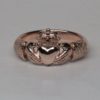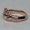 This version of the ring has a solid gold heart. We can set a stone into the heart or even replace it with a heart shaped stone. This ring is available in your choice of 14K to 22K gold in one or three colors. This ring is also much heavier than most, and is made to last a lifetime. The price will reflect any change in weight or karat of gold, of course.