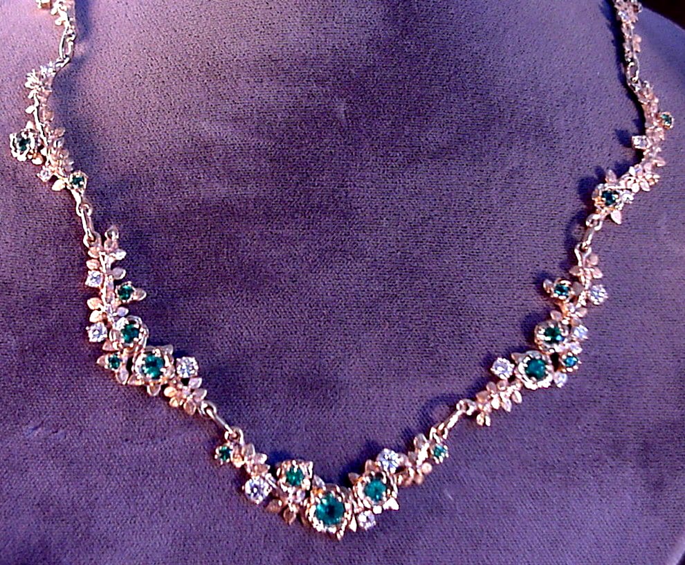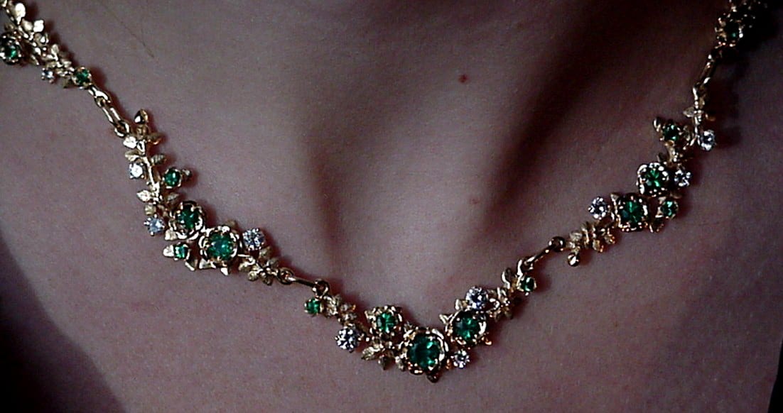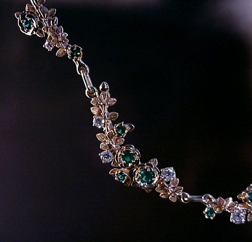 Gold Rose necklace with diamonds and emeralds by George Postgate