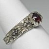 Suzan first sculpted this ring out of wax and then cast it in sterling silver. She then set a 5mm ruby in the ring's center. This ring is completely hand made by Suzan. The stone is a nice deep ruby red. It is 5mm in diameter. To learn more about our process please click here:Â https://postgatejewelers.com/waxes/