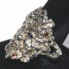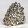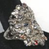 The ring is 1.25″ X by 1″wide. This ring was designed and sculpted by Suzan with much thought and extreme respect of nature and her art. Suzan will make the ring with a bright finish or an oxidized one like this one. If you choose the bright finish, it will slowly oxidize naturally. If you gently wipe it with a soft clean cloth from time to time, the raised details will remain bright as recessed areas darken. The Greenman is the keeper and protector of the forest and all of its creatures, he symbolizes rebirth and renewal. This ancient symbol has not changed in centuries and is portrayed in many churches and meeting places across the world and is embraced by almost every culture. You may order the Sapphire Greenman ring in your choice of stones and oxidized as this ring is or in a bright silver finish. The price will vary depending upon size and stones used. You can also order the ring in gold. Click this link to find out more about placing a special order: https://postgatejewelers.com/special-order-jewelry/ We have many years of our designs in various states of completion on our facebook page. Click here to see them: https://www.facebook.com/Postgate-Fine-Jewelers-111540785537658/photos/?view_public_for=111540785537658&ref=page_internal Delivery: Two to six weeks after payment, depending upon our schedule. Details: