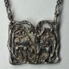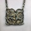 Suzan has oxidized the chain and pendant to bring out the details of the deer and their surroundings. The pendant measures: @ 1Â 1/4 x 1Â 1/4 inches. The pendant pictured has been sold. Its chain is 18″ long. You may order it with almost any length of chain, in just about any popular link style. There are a lot. The pendant can be ordered in gold or silver. It can be ordered in a bright finish and left to slowly oxidize on its own. You may have stones set in it. The pendant can be made with the deer and the pendant in two different metals. The deer could be in gold and the pendant in silver for example. Another way of going would be to make the pendant and deer in two different colors of gold. Check out our special orders page to see what we’ve made for others:Â https://postgatejewelers.com/special-order-jewelry/ prices will vary of course. Suzan can also make a similar version of the pendant with other critters or people in it. We do get some very interesting commissions. Our Face Book pages have some interesting commissions on it. Some of the images were taken while the pieces were in progress: https://www.facebook.com/Postgate-Fine-Jewelers-111540785537658/photos/?view_public_for=111540785537658&ref=page_internal Special orders will be sent out in two to six weeks of having been paid, depending upon our scheduleScottish highlands Deer Pendant Details: