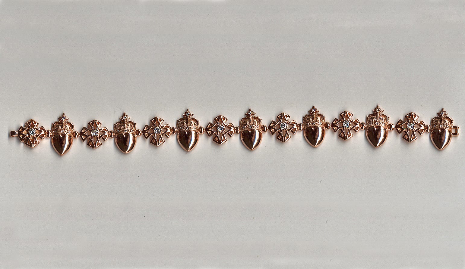 Scottish Luckenbooth Celtic knot diamond bracelet in 14k rose gold by George Postgate