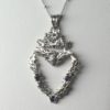 The Scottish thistle and amethysts pendant is one of Suzan’s luckenbooth style pendants. It is made in sterling silver and is set with three faceted amethysts. A crown with a rose in its center forms the pendant’s top and a thistle with leaves flowing from either side forms a heart with three faceted amethysts set into the leaves. She has made a wide variety of Scottish jewelry such as this thistle band: https://postgatejewelers.com/product/scottish-thistle-silver-band-size-7-3-4/Check out more of our Scottish designs here: https://postgatejewelers.com/scottish-jewelry/