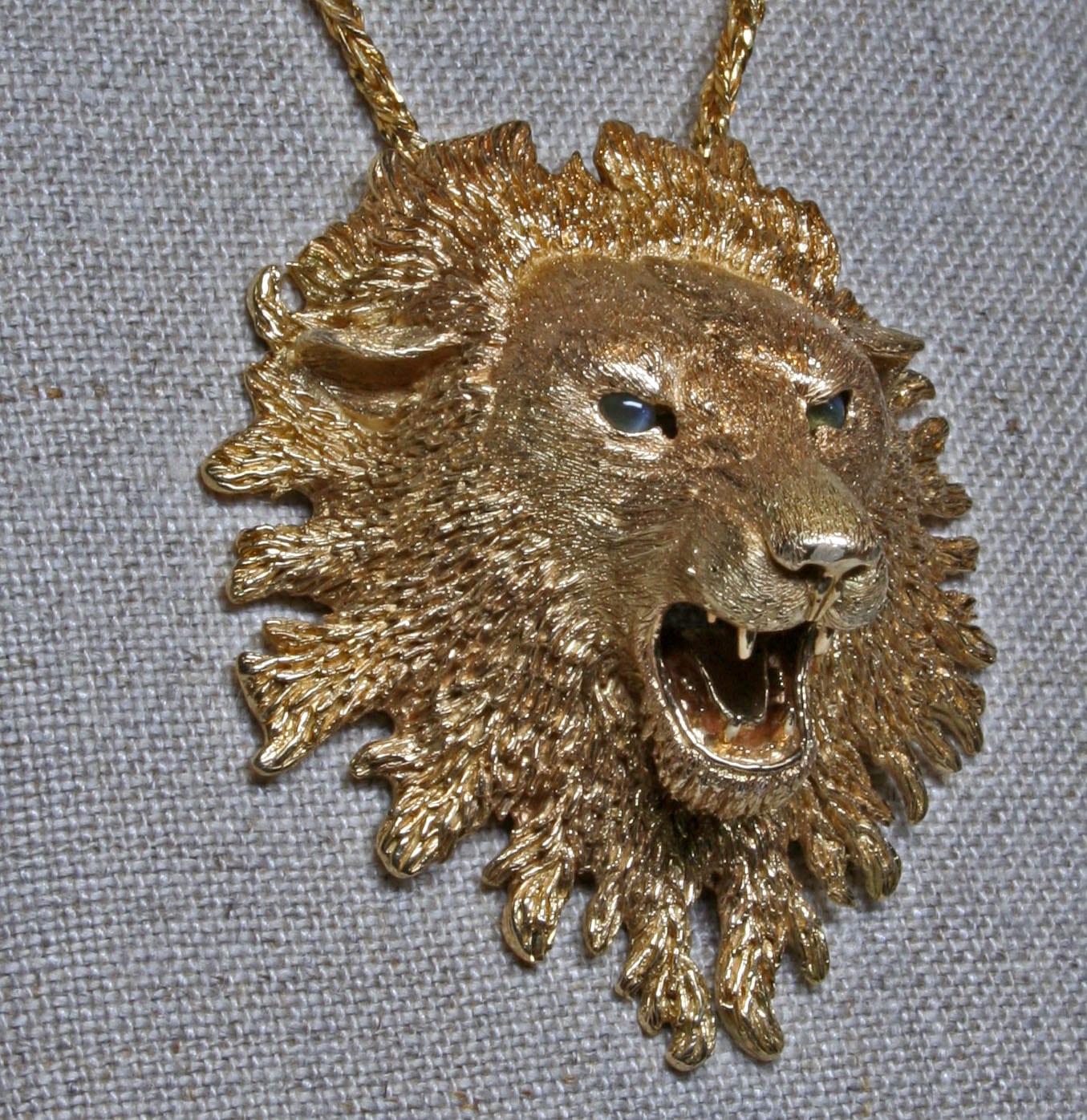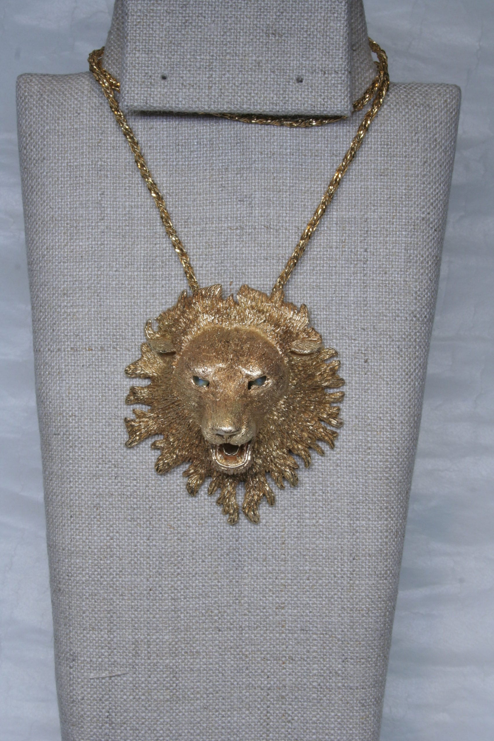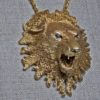 I sold our large lion’s head in 2019 although I can make you a new one. Gold was $35.00/oz when I made him and now I think that it will soon reach $2000/oz. I can make him in sterling silver for about $1000 now. If you order one of these you can specify the stones that I set into his eyes. I can also include a chain if you want to order one with your lion. You can also order it as a brooch or a combination brooch/pendant. This link will provide more information on ordering as well as provide you with some images of some of the interesting pieces that we have made for our customers over the years:https://postgatejewelers.com/special-order-jewelry/