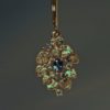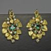 The earrings were built up in wax, https://postgatejewelers.com/leafy-alexandrite-and-diamonds-earrings-in-wax/ and carved by hand before being cast, refined, and having the stones set. They are approximately 7/8″ tall X 9/16″ wide, not including their wires. The small alexandrites are also natural. Most have as good a color change as the larger stones. The diamonds all range from VS to VS2 G-H color. The combined weight of the larger alexandrites is 0.54 cts, one is 0.31 cts and the other 0.23 cts. The weight of the small diamonds is 0.18 cts. I didn’t weigh the small alexandrites but their sizes range from about 1.5mm to 1.7mm.