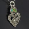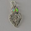The small opal Luckenbooth pendant is about 1 1/4" X 3/4" in size. The pendant is made of Sterling silver and is very three dimensional. An 18" chain is included with the pendant. A crown on top of the pendant's hearts has two very colorful opals set in it. The opals are from Ethiopia and are a type of opal that is called crystal opal. Stones like these were very rare until their discovery in Ethiopia several years ago. The opals look like transparent drops of honey with bright colors floating and flashing within them. It amazes me just how bright these stones are, they are as bright as leds in some conditions.