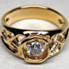The starburst wedding band has a nice combination of weight and detail. We will make it in 14 K white, yellow or rose gold. 18 K is also an option as is 22 K yellow gold. a woman’s version is available also. Click here to see it in 14 D palladium white gold set with a 2 ct diamond: https://postgatejewelers.com/product/open-frost-crystals-diamond/ George has also designed a version that has the stone set lower in a protective setting that shows the stone off while also giving its setting great protection. This version is also easier to wear since it is quite a bit lower. This version will work well to protect more fragile stones like an emerald for example. See it in the image gallery. Custom orders are usually finished within 6 months or less. Prices will vary depending on your choices.Starburst wedding band, Variations: