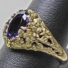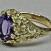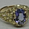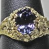 The setting is hand carved in wax and then refined in the metal. The design of this ring is of a ring of flowers surrounding a natural 2.05ct medium blue tanzanite. The inside and shank of the ring are rounded to ensure comfort. The ring looks delicate but it is quite solid and will last a lifetime if worn with reasonable care. The stone is very nice example that exhibits purples and blues flashing through it as the ring moves.