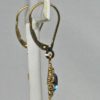 These London deep blue Victorian earrings were designed and hand made by George. They 14K yellow gold and are set with 7 X 5 mm stones and measure approximately 14 X 1.0 mm in size. The earrings have lever backs.