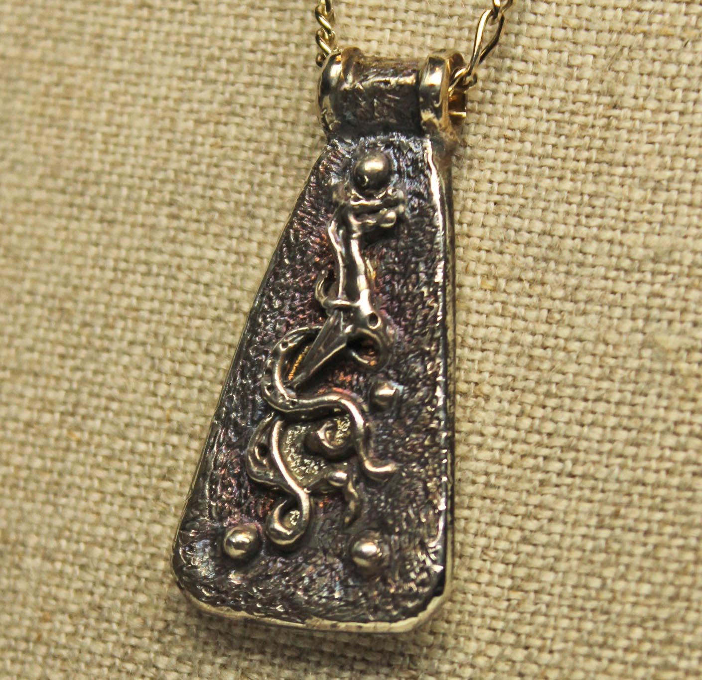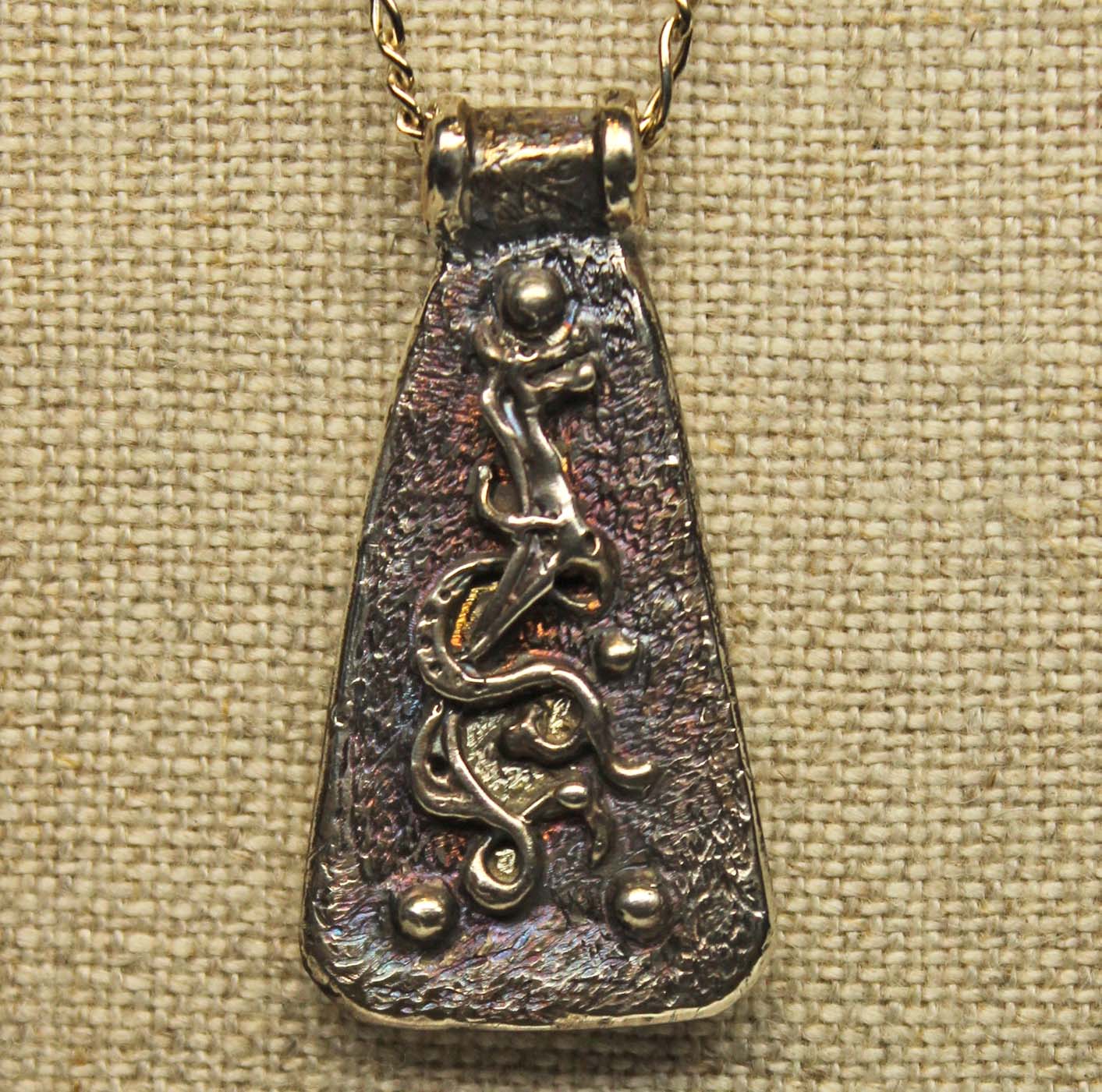Viking beast pendant in sterling silver by Suzan . A chain is not included but we can add one if you want? The pendant is finished with a medium oxidation to bring out its details and give it an aged look. The wriggling beast is a Viking Sea monster. This is a perfect gift for someone who wants a Viking pendant that is different, beautiful and easy to wear.